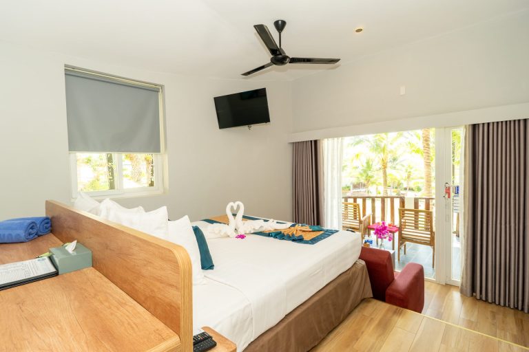Deluxe Garden View– Hòa mình vào thiên nhiên biển cả Tọa lạc tại vị trí lý tưởng trong khuôn viên Sandunes Beach Resort & Spa, phòng với diện tích rộng rãi 38m² mang đến không gian nghỉ dưỡng thoải mái và yên bình. Mỗi phòng đều sở hữu tầm nhìn trực diện ra vườn, ôm trọn vẻ đẹp hoang sơ là điểm