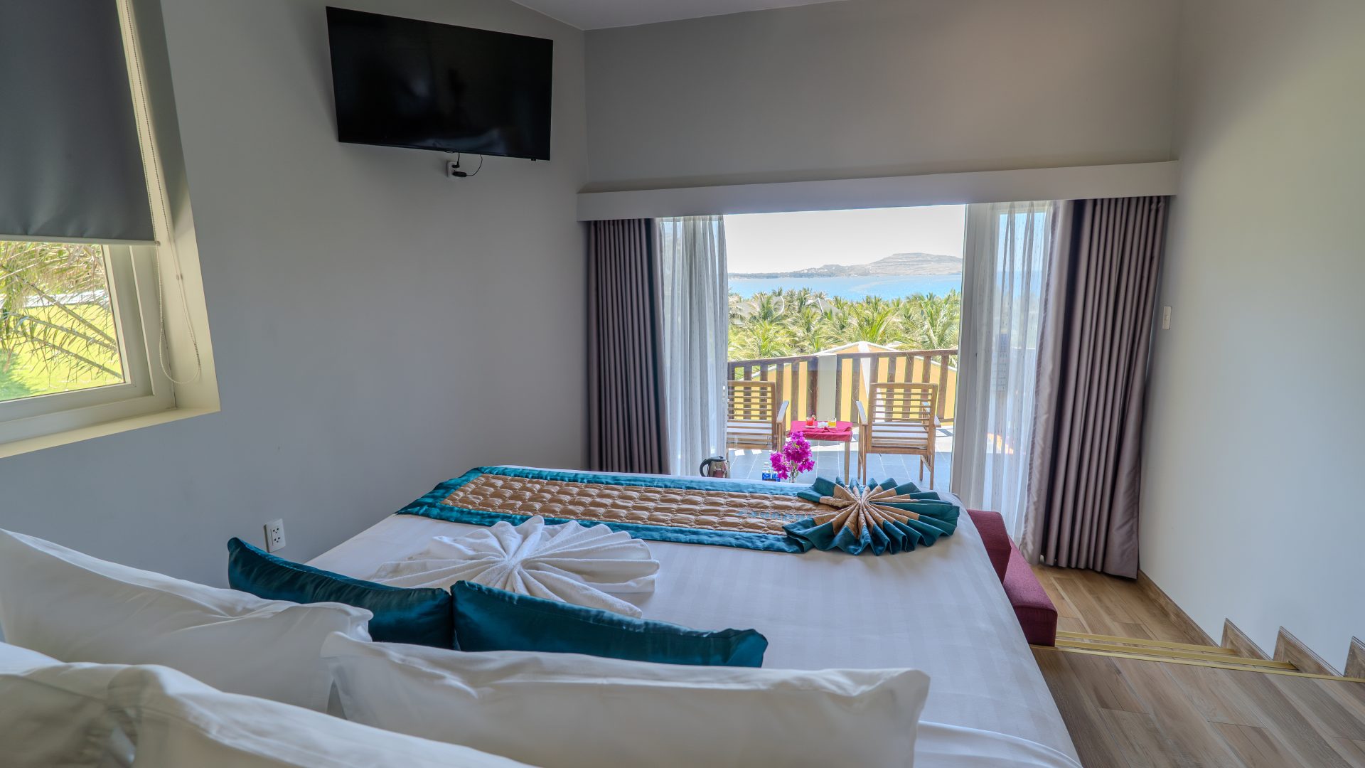 Tọa lạc ngay sát bờ biển, Villa Sea View là lựa chọn lý tưởng cho những ai mong muốn trải nghiệm kỳ nghỉ sang trọng giữa thiên nhiên. Với diện tích 52m², mỗi villa sở hữu tầm nhìn ra vịnh Hòn Rơm, mở ra khung cảnh biển xanh thơ mộng ngay trước mắt.